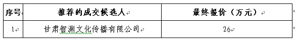 甘肃电器科学研究院业务宣传片、党建宣传片摄制项目采用竞争性谈判方式进行,竞争性谈判小组于2019年7月31日确定供应商,现将成交结果公布如下: