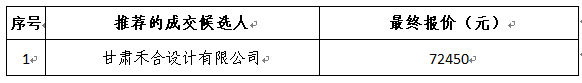 甘肃电器科学研究院电工基地2#门房装修设计项目采用竞争性谈判的方式进行。竞争性谈判小组于2019年11月21日确定供应商,现将成交结果公布如下: